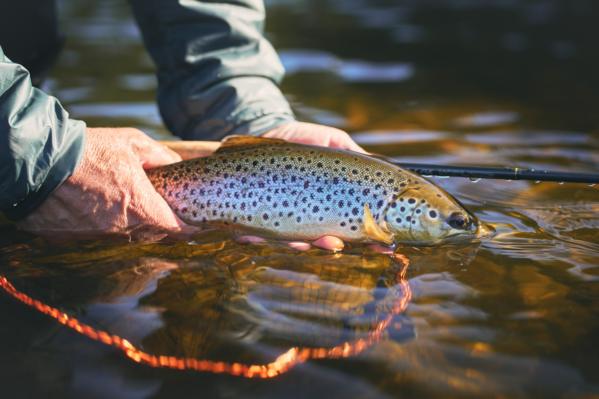 In the river you can swing the fly in classical wet fly manner but if I know where the trout is then I rather cast upstream, little further out where the fish is and when the line and fly approach the fish, I start to strip downstream towards me. This gives a natural movement for the small fish, swimming downstream, pulling these against the current won’t catch many fish.